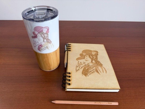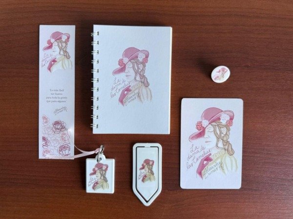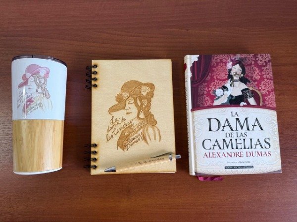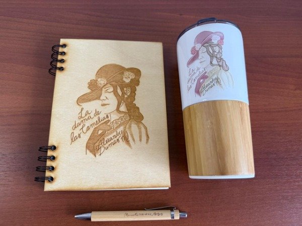 Un cuaderno de guatambú grabado con ilustración exclusiva de La Dama de las Camelias