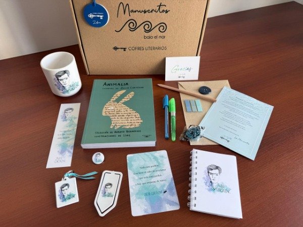 Todos estos bellos objetos se entregan en una caja contenedora reutilizable de Manuscritos bajo el mar.