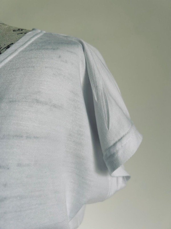 Tela modal color blanco corte evasé sublimada en el frente y en la espalda