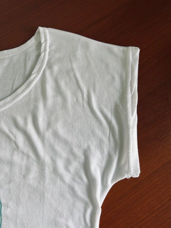 Tela modal color blanco modelo evasé sublimada con ilustración en delantera